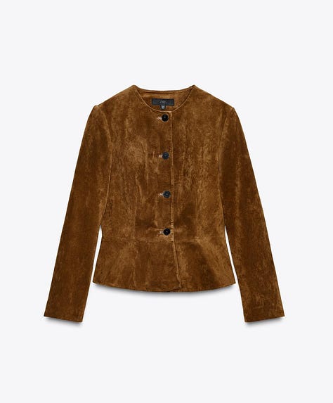 Suede Brown Jackets / Rich, tactile, and unmistakably fall. Adds instant dimension to everything from dresses to denim (dark denim would be my first option).