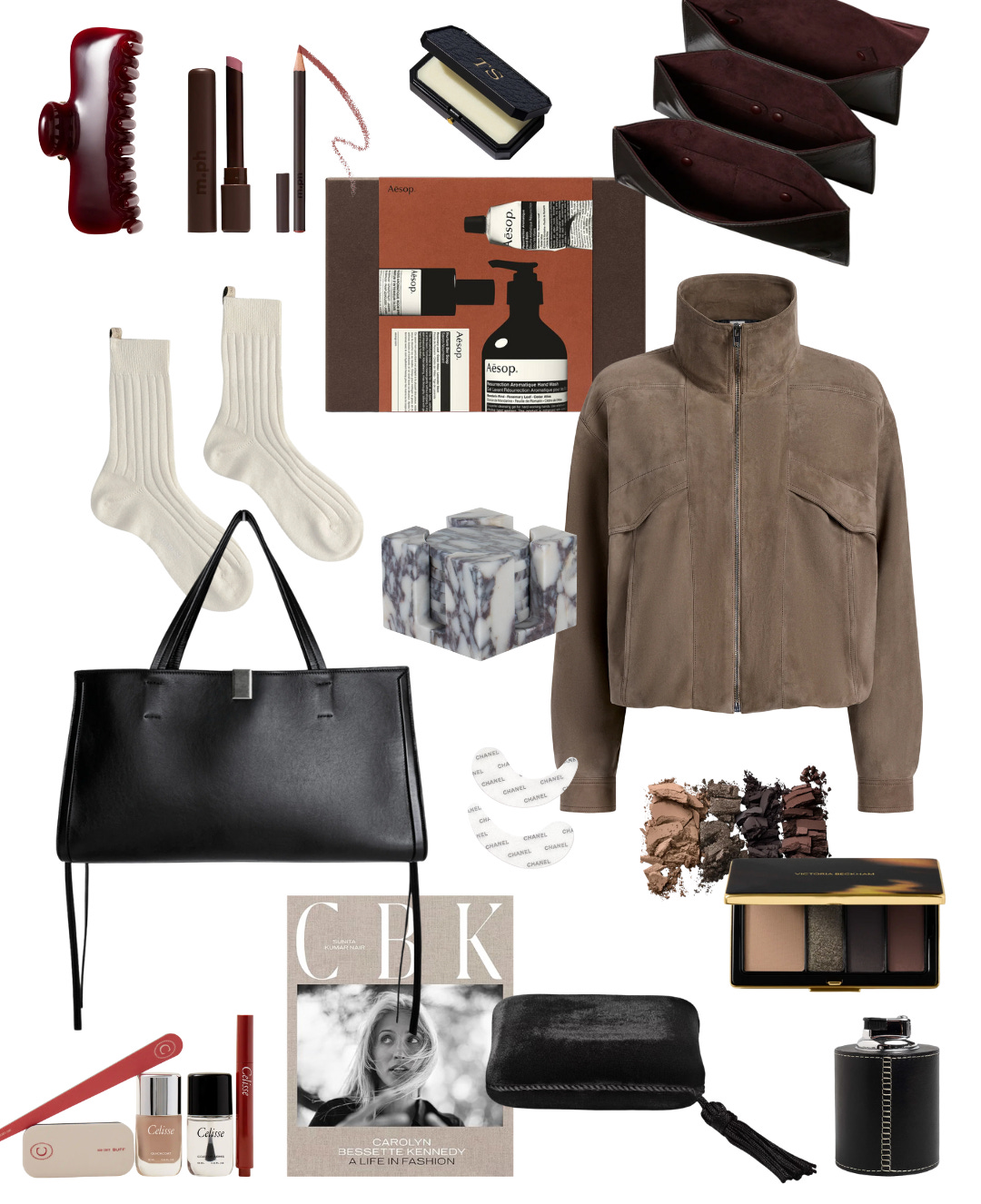 Gab Gofis raves about this Undo hair clip. I added it to my gift guide so feel like I need one too, right!? Another viral lip combo situation, the MPH lip ciggy (love bites) & overliner (bittersweet) is high on my list, safe to say I collect lip products. A lip balm moment with the monogram via Officine Universelle Buly. Probably the chicest travel jewelry holder that can stand the test of time. Forever an Aesop girl, and the gift set with one of everything I think is already under my tree <3 I have this thing w/ cashmere socks, cannot explain the feeling of slipping a pair on w/ your cozies.